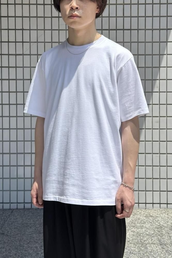 表糸に超長綿であるピマコットンを、裏糸には柔らかな甘撚り糸を使用して編み立てたプレーティング素材で製作。