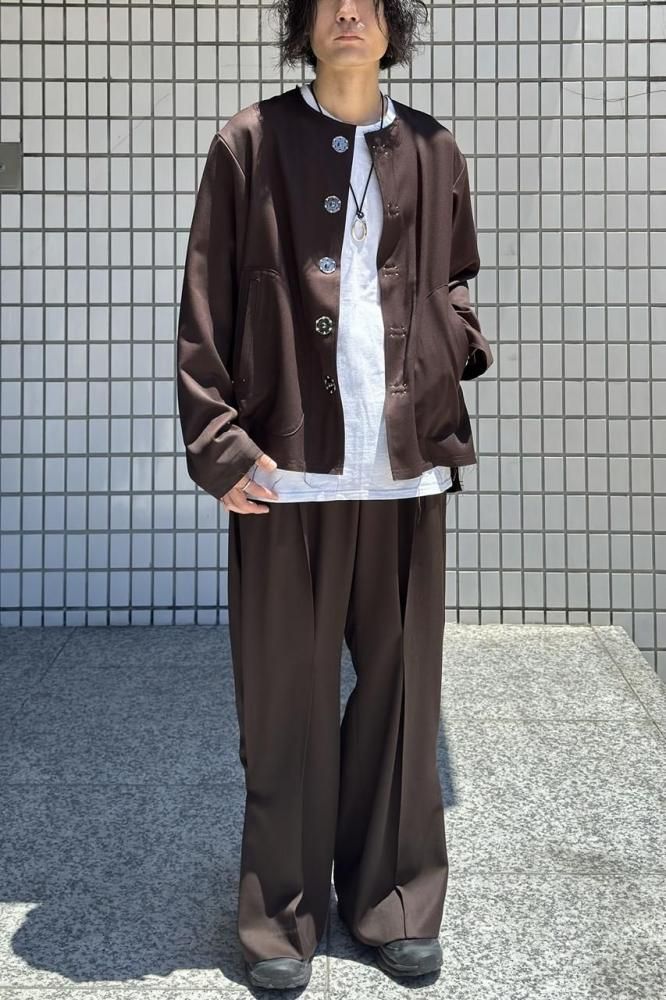 ORGANIC WOOL SURVIVAL CLOTH TRIPLE PLEATED WIDE TROUSERS(FOREST GREY)