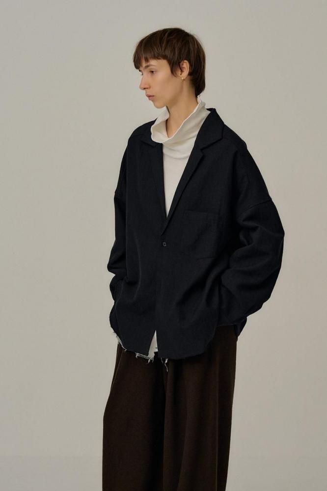 テーラードジャケットとオープンカラーシャツの要素をミックスしたようなデザインで製作。