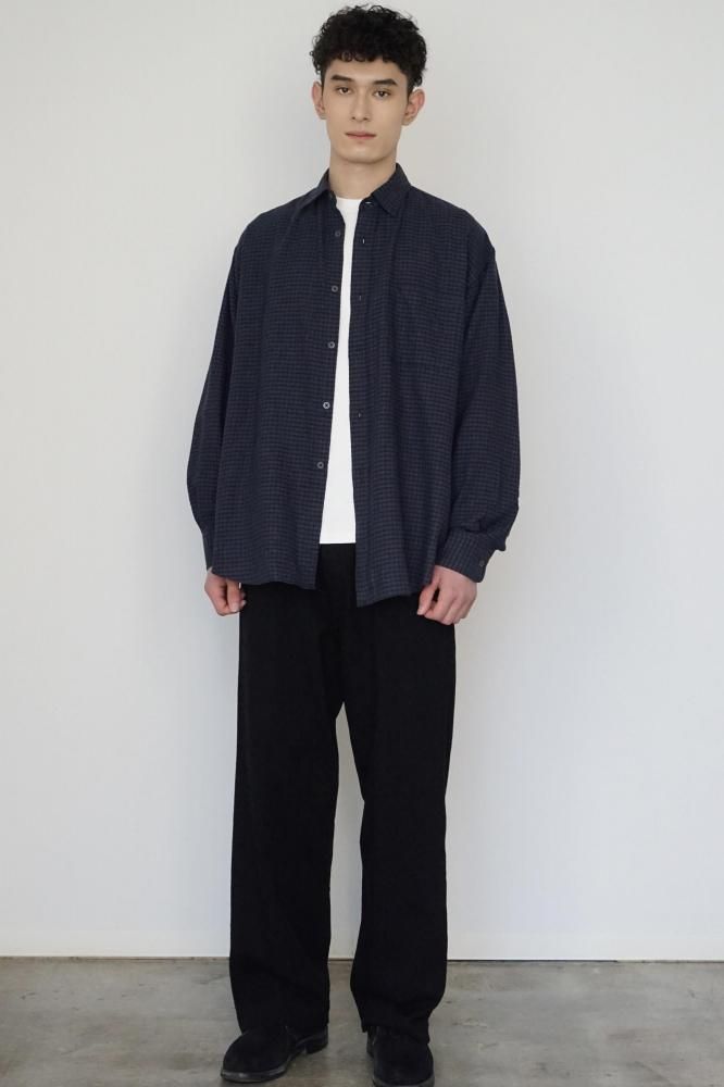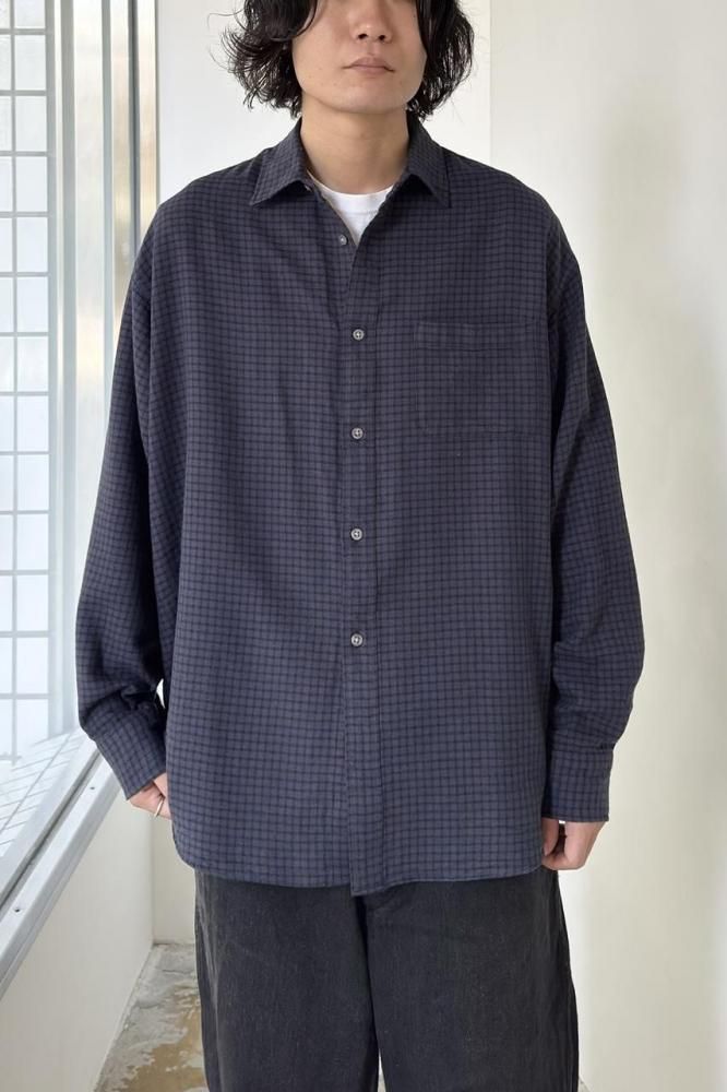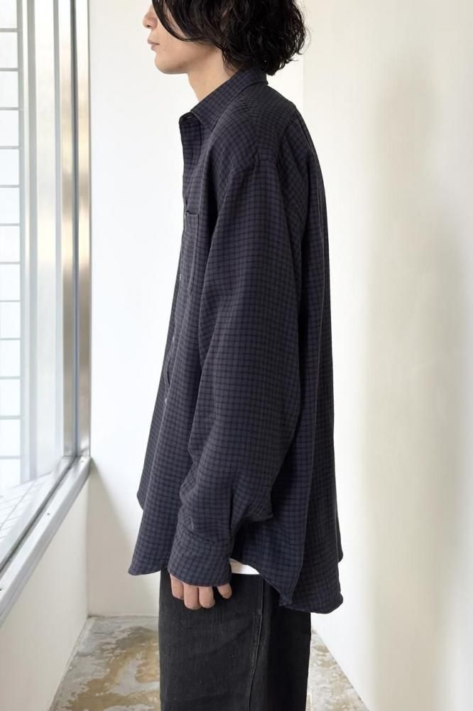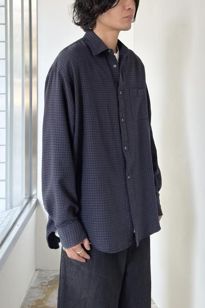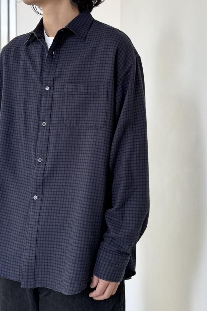 COTTON WOOL SILK FLANNEL CHECK SHIRTS(PURPLE×BLACK)
