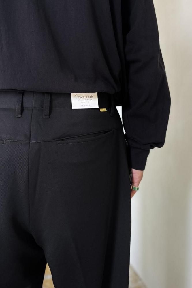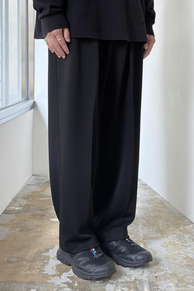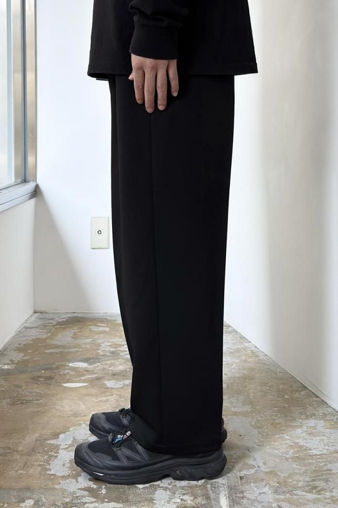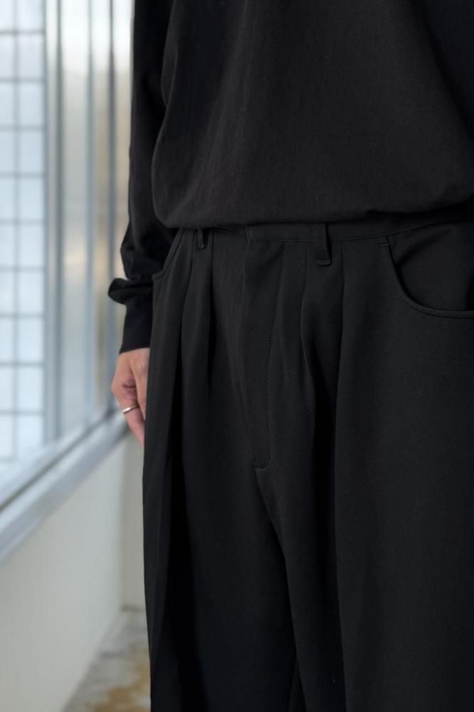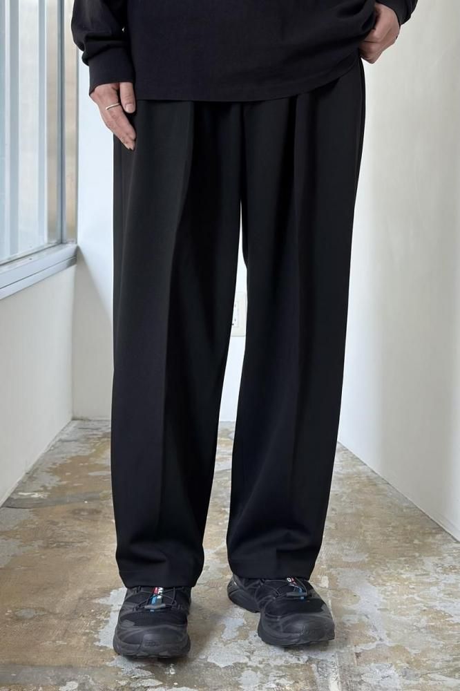 Two Tuck Wide Tapered Pants -Twill Jersey-(Black)