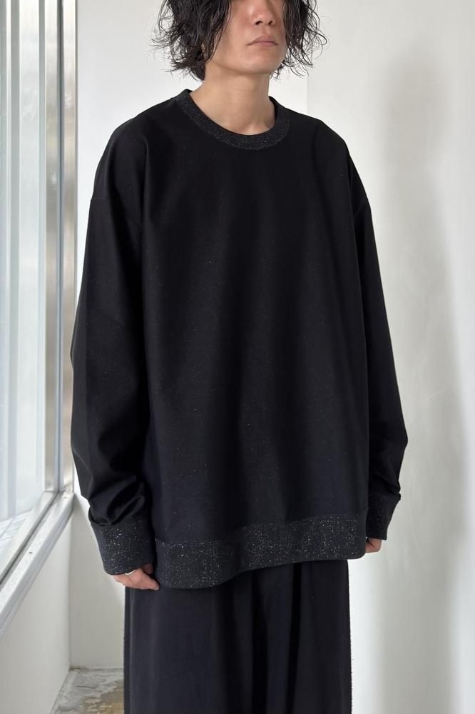 ハイゲージラメ裏毛で製作したクルーネックロングスリープ。