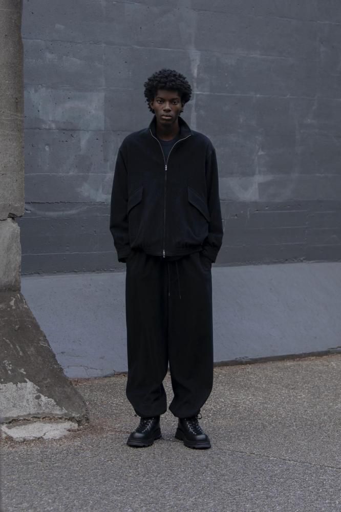 単品での着用はもちろん、共生地のパンツとのセットアップスタイルもオススメ。
