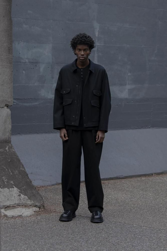 ORGANIC COTTON GABARDINE DOUBLE PLEATED EASY TROUSERS(BLACK)