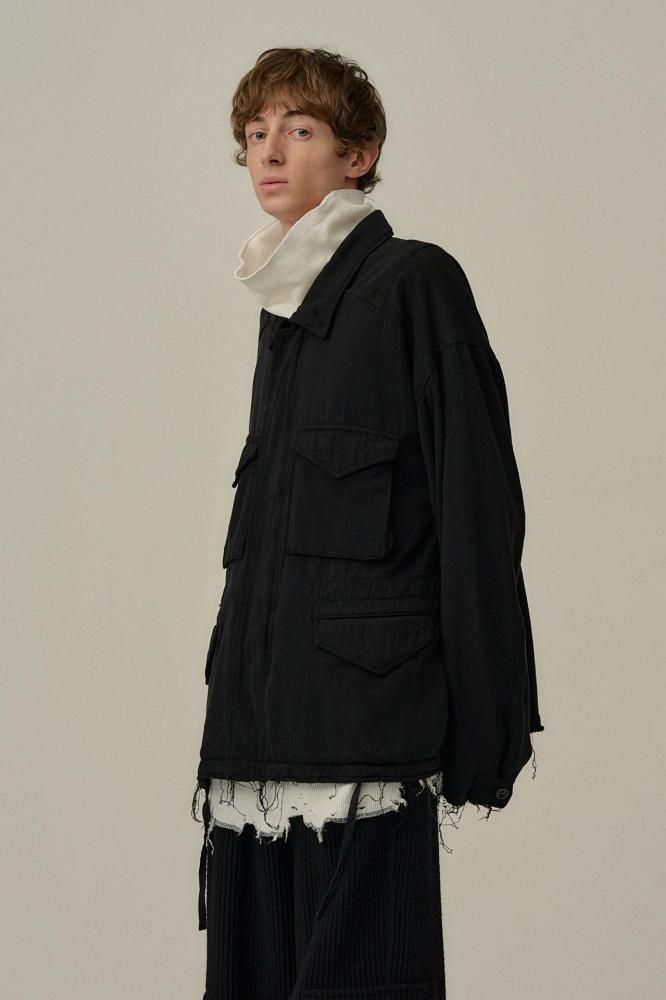 ミリタリーアイテムに着想しつつ、素材の魅力や着用のしやすさを引き出したパターンを採用。