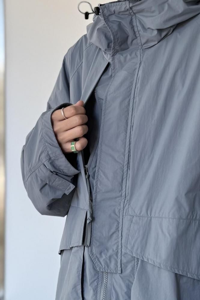 フード口・裾口のスピンドルや袖のマジックテープにより、シルエットやフィッティングをアレンジ可能。