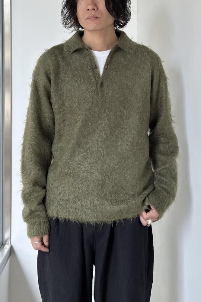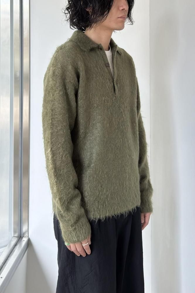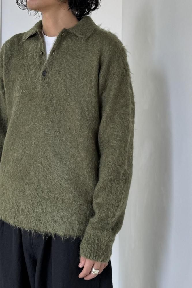 BRUSHED SUPER KID MOHAIR KNIT POLO(OLIVE)