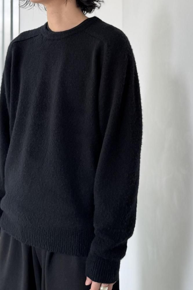 WOOL SADDLE SHOULDER CREW NECK(BLACK)
