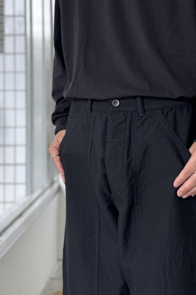 大戦期のハンマーループが省略されたダブルニーペインターパンツに着想して製作。
